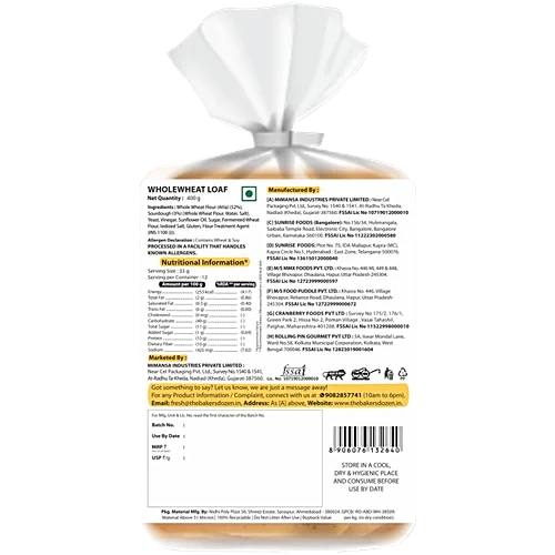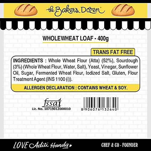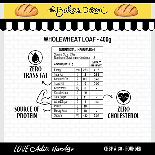 The Baker's Dozen Zero Maida Wholewheat Loaf, 400 g quantity