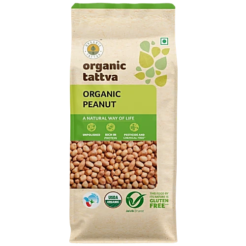 About the Product Organic Tattva Groundnut/Peanut is pure and hygienically packed. It is of the best quality from select farms and is a staple in most Indian food. It is a good source of healthy fats, protein, and fibre. Peanuts have a unique and delicious flavour with a sweet and nutty taste. They contain nutrients
