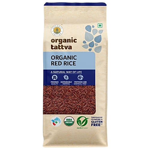 About the Product Discover the delightful flavour and nutritional benefits of Organic Tattva’s Organic Red Rice. This partially hulled rice variety boasts a delightful nutty taste that will elevate your culinary experiences. Packed with protein, calcium, and iron, as well as dietary fibres, potassium, and other essential nutrients, this organic red rice is a wholesome