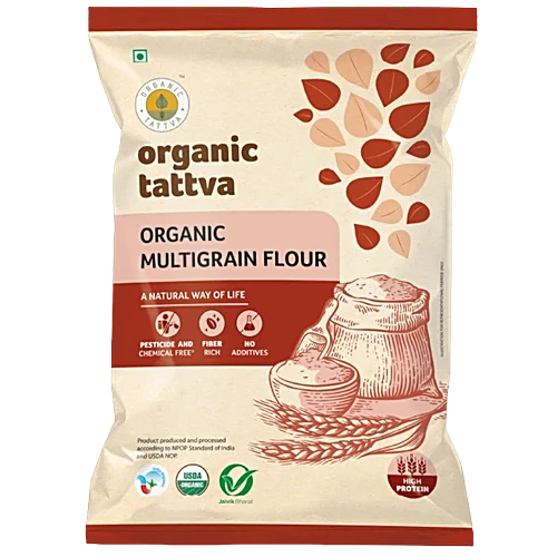About the Product Discover the wholesome goodness of Organic Tattva’s Multigrain Atta, a delightful blend of nourishing grains that brings both health and flavour to your everyday meals. Crafted with a careful selection of organic ingredients, including jowar, ragi, bajra, kodo, and amaranth, this flour is a true delight for the senses. Boasting a light,