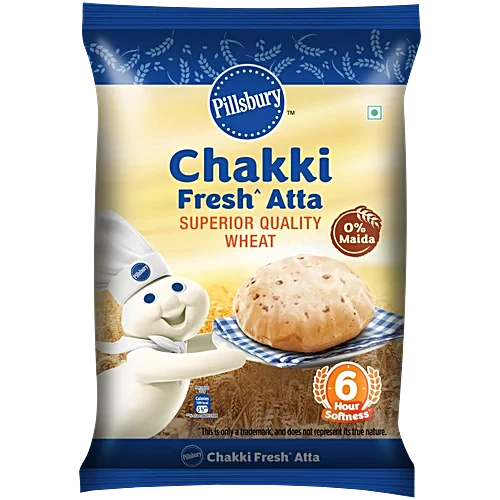 About the Product The Pillsbury Chakki Fresh Atta is made of locally sourced high-quality whole wheat. It makes your rotis healthy and soft for up to 6 hours. The whole wheat goodness lies in the fact that even the husk of the grain is ground, ensuring each bite is rich in dietary fibre, nutrition, and