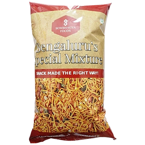 About the Product Bengaluru special mixture is primarily made from gram flour. It is made in a traditional style with seasoned boondi and avalakki. We add our in-house special seasoning along with chilli powder, salt, groundnuts, curry leaves. How to Use Ready to eat. Transfer to an air tight container once the pouch is opened.
