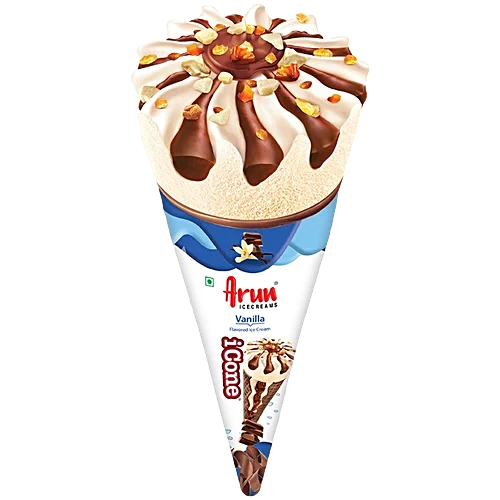 About the Product Arun Icecreams Vanilla iCone is a classic treat that never goes out of style. Smooth, creamy vanilla ice cream is swirled to perfection and nestled in a crisp, golden cone, offering a delightful contrast of textures. Every bite is a blend of rich, velvety sweetness and satisfying crunch, making it a timeless