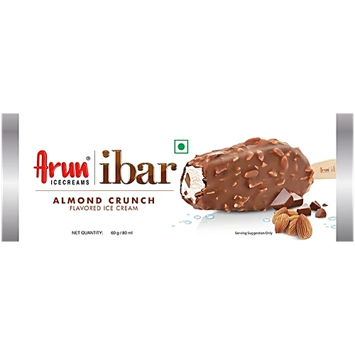 About the Product Indulge in the irresistible delight of Arun Icecreams iBar Almond Crunch Flavoured Ice Cream Bar. Experience the perfect blend of crunchy almonds and silky chocolate wrapped around smooth, creamy ice cream. Each bite offers a satisfying mix of nuttiness, sweetness, and rich chocolatey goodness. The combination of textures makes this ice cream